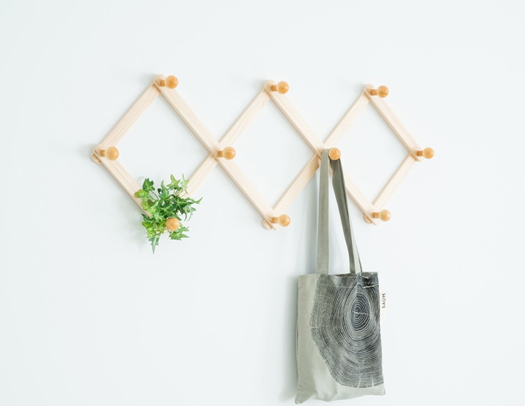 壁掛けの木製コートハンガー アコーディオン 伸縮幅 92cm