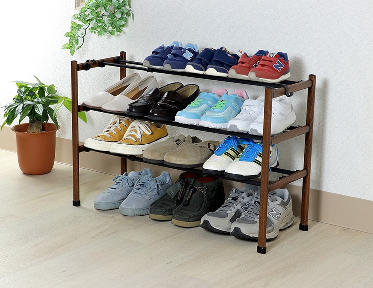 上下連結 伸縮 シューズラック ブラック 組立簡単 工具不要