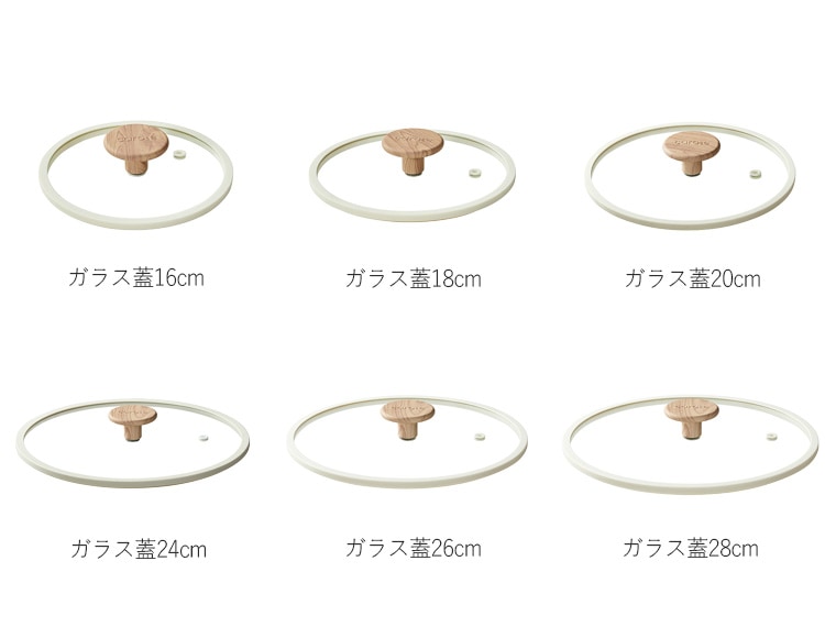 | 重量(約) | ガラス蓋16cm:0.26kg ガラス蓋18cm:0.32kg ガラス蓋20cm:0.38kg ガラス蓋24cm:0.52kg ガラス蓋26cm:0.61kg ガラス蓋28cm:0.68kg |