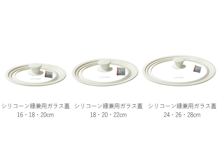 | 重量(約) | 16/18/20cm兼用蓋:330g 18/20/22cm兼用蓋:400g 24/26/28cm兼用蓋:630g |