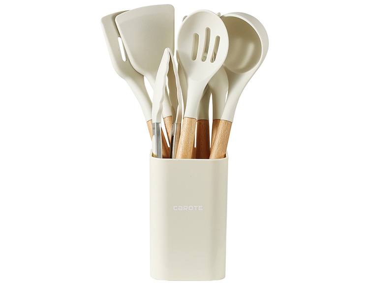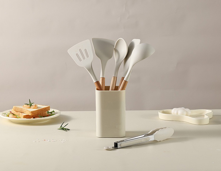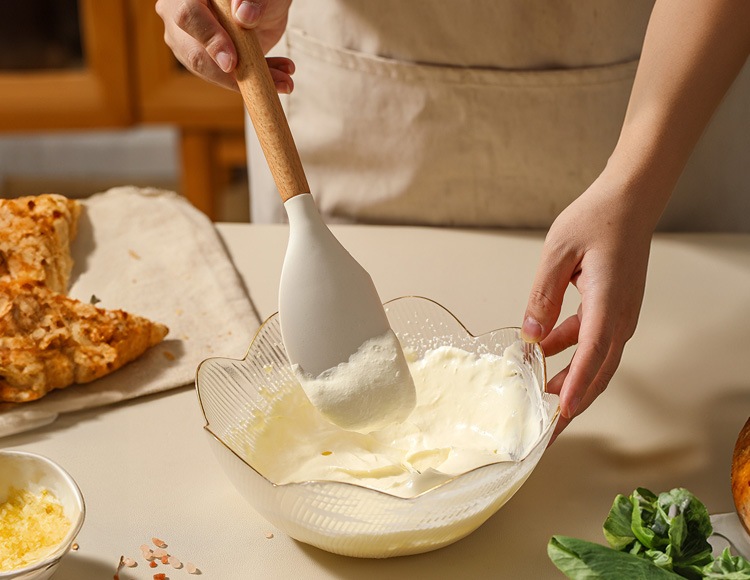 | 材質 | 本体:シリコーン(耐熱温度220度)、中芯:ナイロン(耐熱温度140度)、持ち手:天然木 |