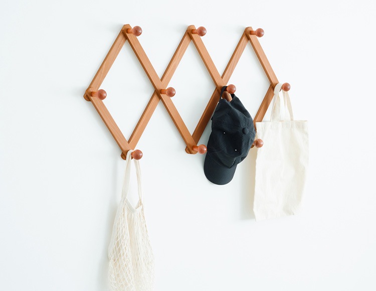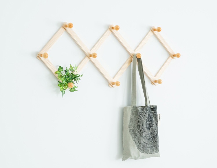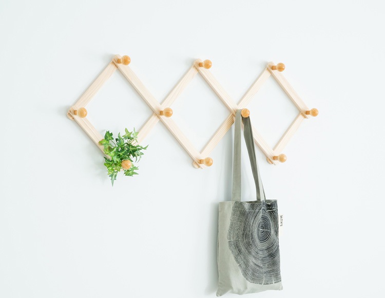 フックにも天然木を使用しており温かみのあるホッとする空間に。