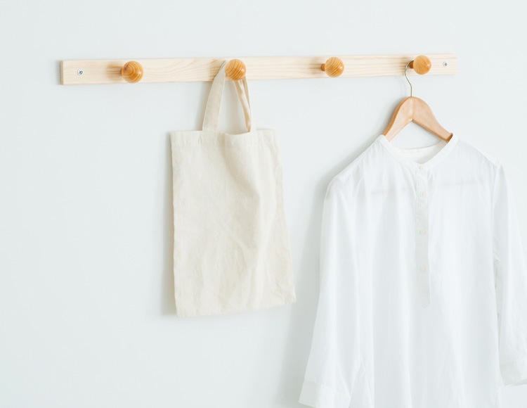 見せる壁面収納 木製コートハンガー。