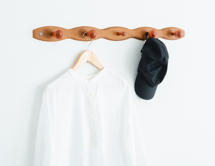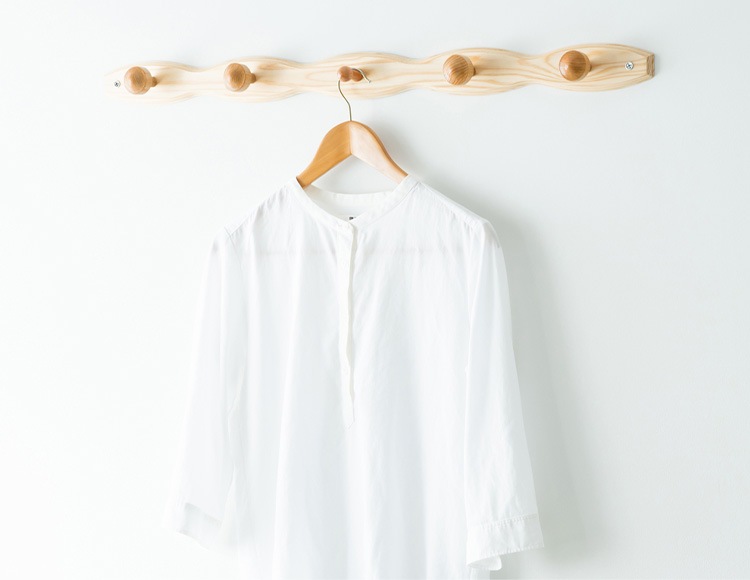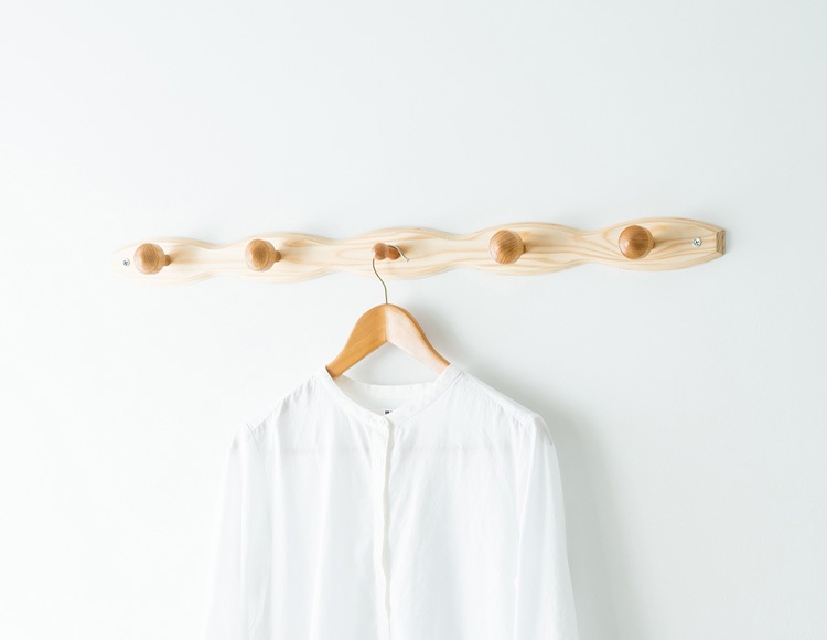 フックにも天然木を使用しており温かみのあるホッとする空間に。