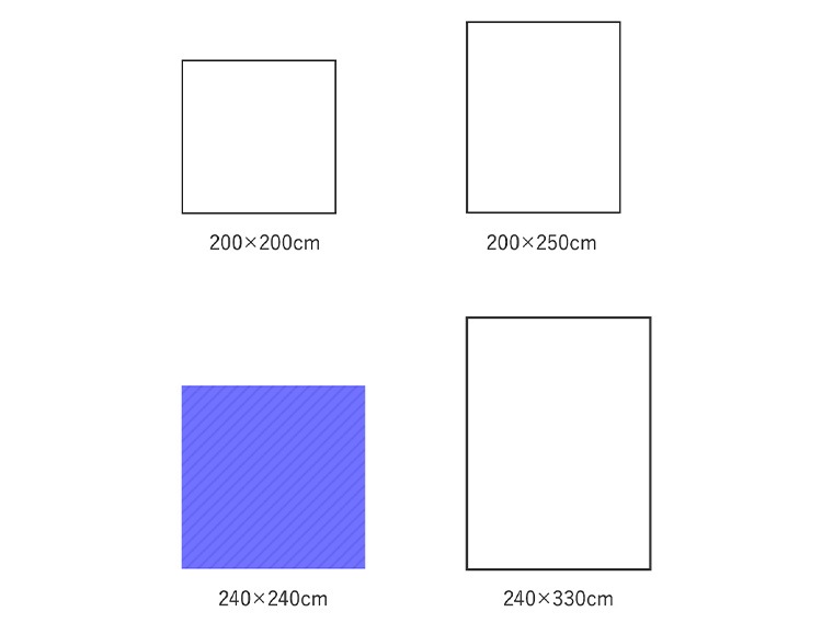 | サイズ(約) | 縦240×横240cm 毛足3mm、全厚み6mm |
