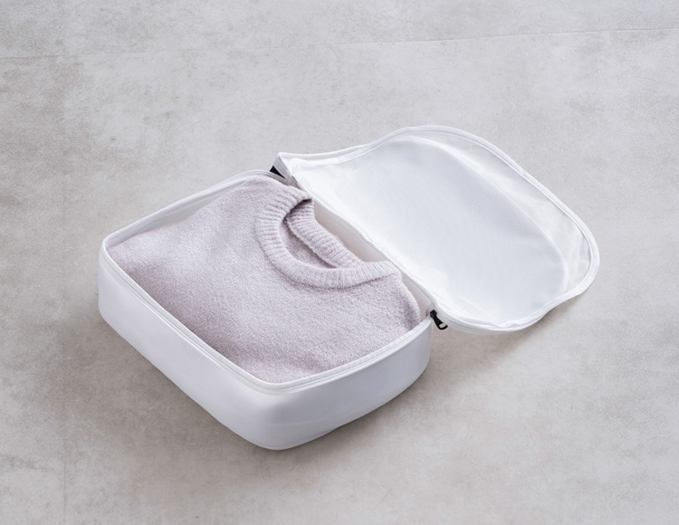 2着を区切れるセパレートシート付きで、ネット内の衣類同士のからみや摩擦をおさえます。