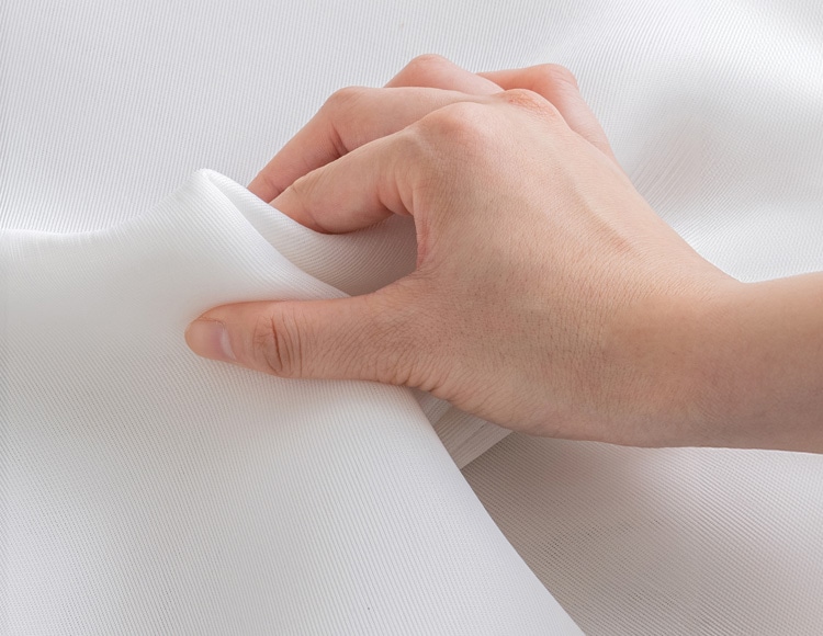 糸クズの侵入をおさえながら、洗濯時の衝撃を吸収するダイヤオリジナルの立体メッシュ生地「無蛍光マシュマロメッシュ」を使用しています。