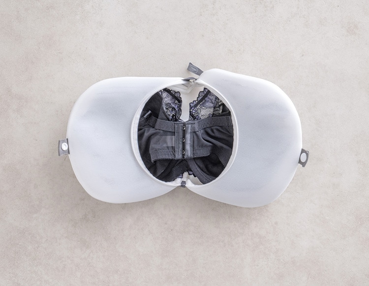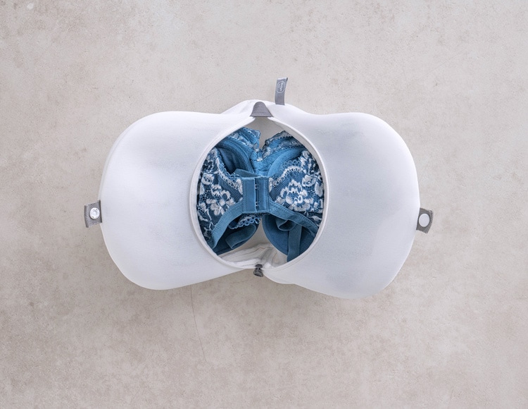 インテリアに馴染むシンプルなカラー。ブラジャーをやさしく洗う洗濯ネットです。