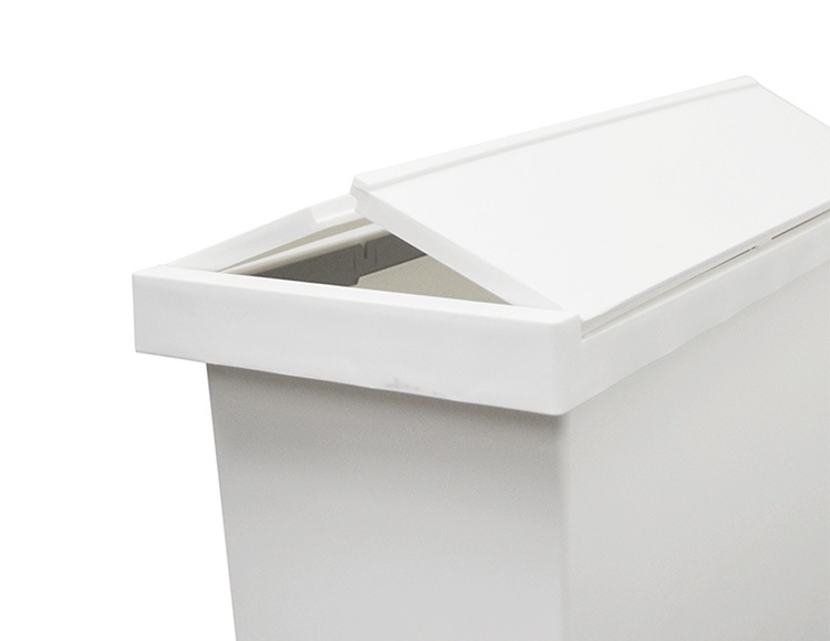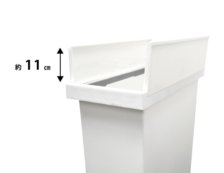 フタが両開きなので、通常のペダルペールより約30cmほど高さをおさえることができます。(メーカー比)