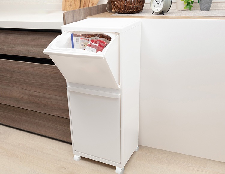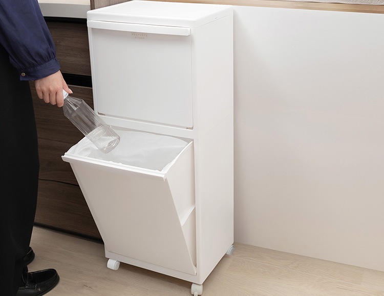 お部屋に馴染みやすいホワイトカラーの2段分別ゴミ箱です。