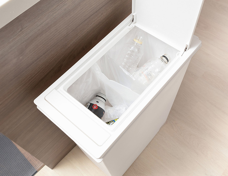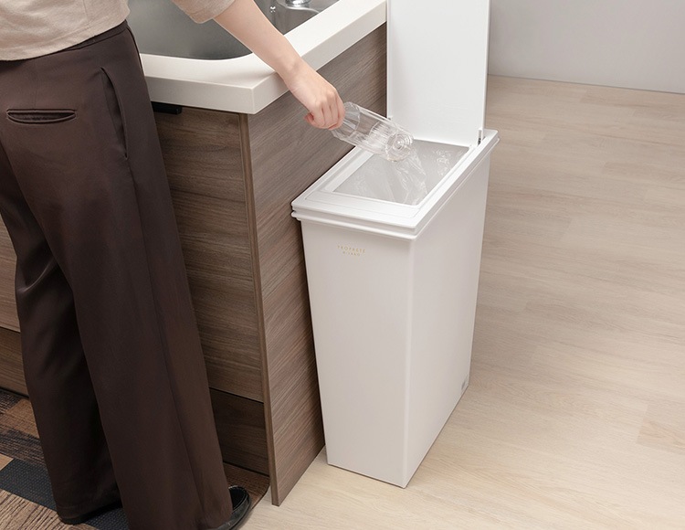 お部屋に馴染みやすいホワイトカラーのゴミ箱です。