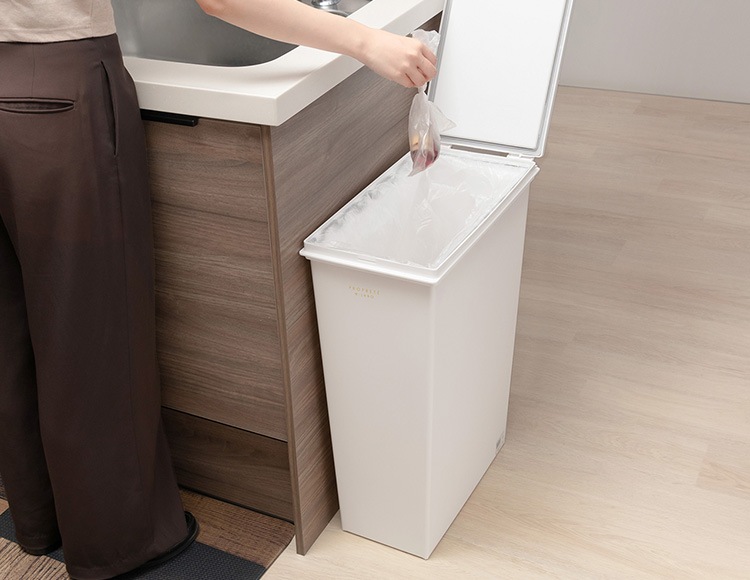 お部屋に馴染みやすいホワイトカラーのゴミ箱です。