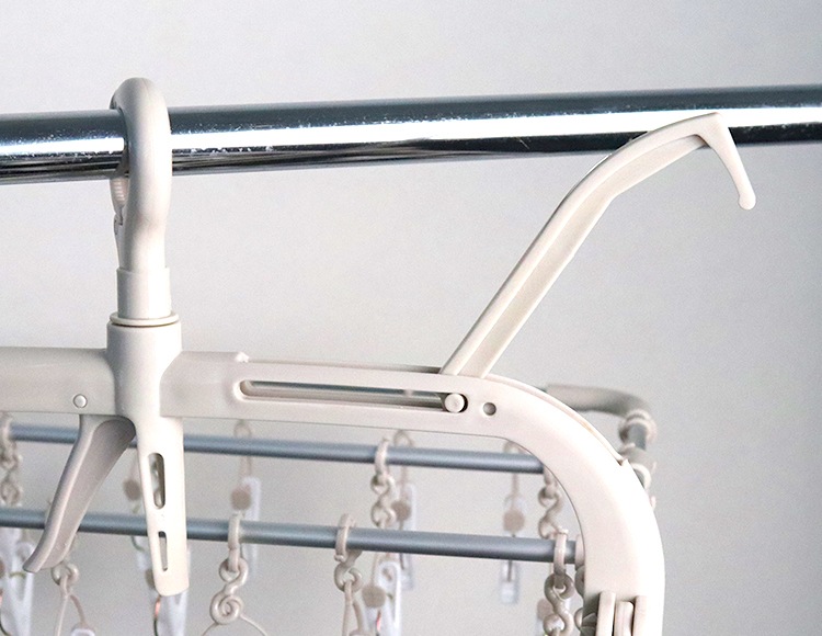 2箇所 (フック下、サイド) についたハンドルで、ハンガーを竿にかけやすい仕様になっています。