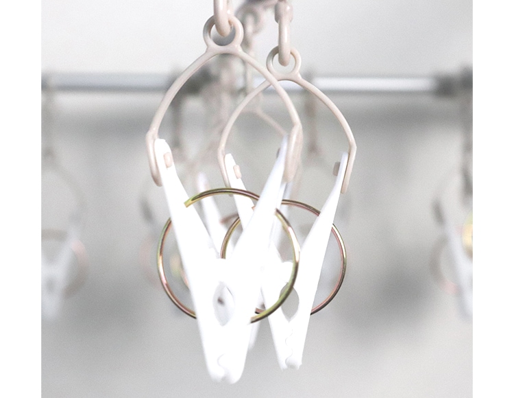 生地を傷めにくく、絡まりにくいピンチを使用しています。