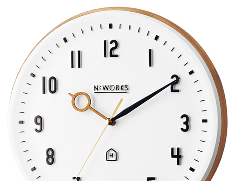 陶器のような質感とウッドのぬくもりがマッチしたナチュラルなウォールクロックです。