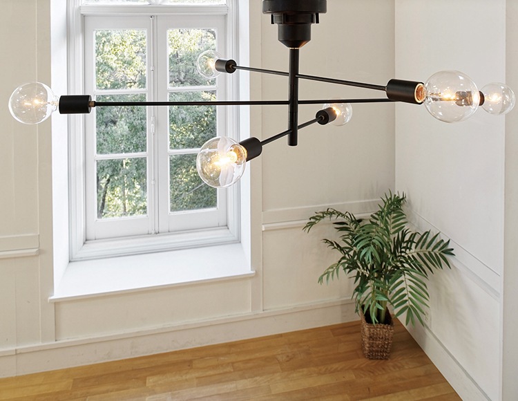 可動する3本のアームの可動域により、見る角度や高さによってさまざまな表情を楽しめるシンプルモダンなシーリングライトです。