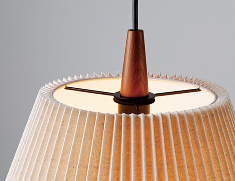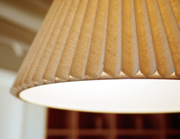 プリーツを寄せたファブリックセードの内側に、インナーセードを重ねています。