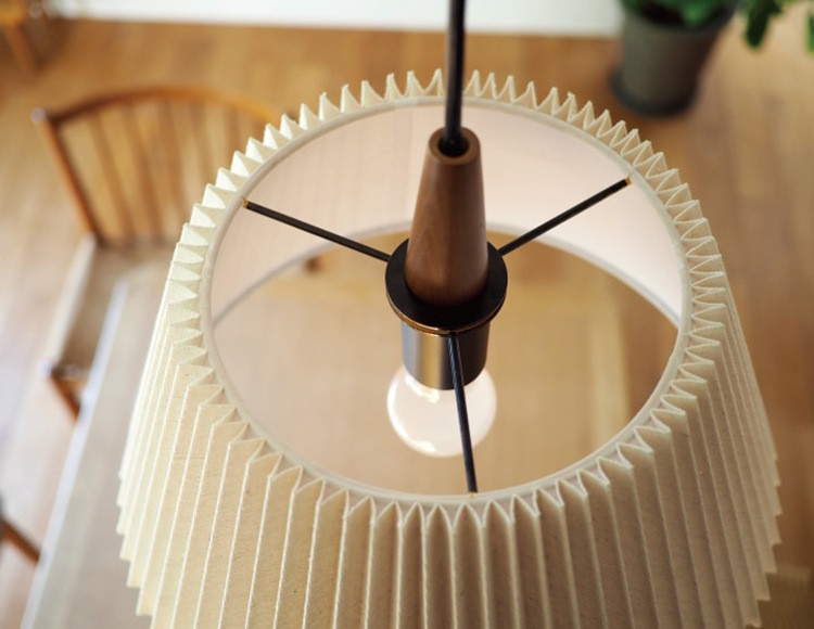 プリーツを寄せたファブリックセードの内側に、インナーセードを重ねています。