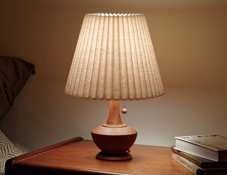 表情のある混紡生地を用いたファブリックセードが、電球の光を柔らかく広げ、陰影と共に落ち着いたムードを作りだします。