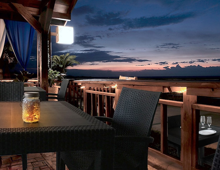 昼のガーデンパーティーも夜のリラックスタイムも