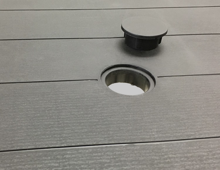 天板中央にはパラソルが差せる差込口((約)4cm)付きなので強い日差しの日も快適にお使いいただけます。