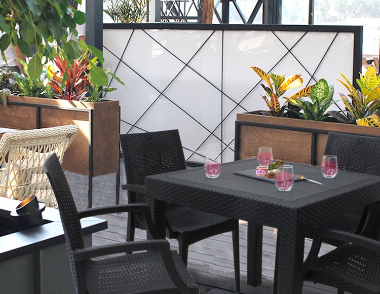 チェアはプラスチックにガラス繊維を配合しているので強度があり、屋外での使用シーンに最適です。