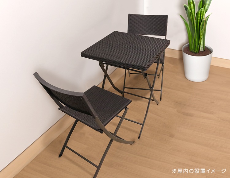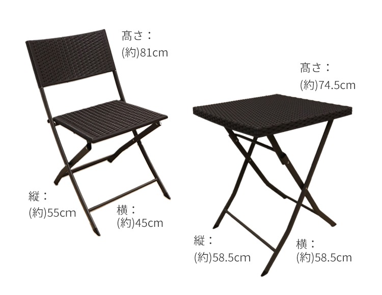 | サイズ(約) | テーブル:幅58.5×奥行58.5×高さ74.5cm チェア:幅45×奥行55×高さ81cm 座面高:46cm |