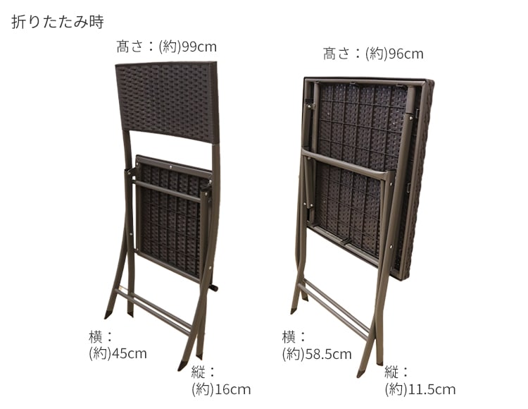 | 耐荷重(約) | テーブル:40kg チェア:100kg |