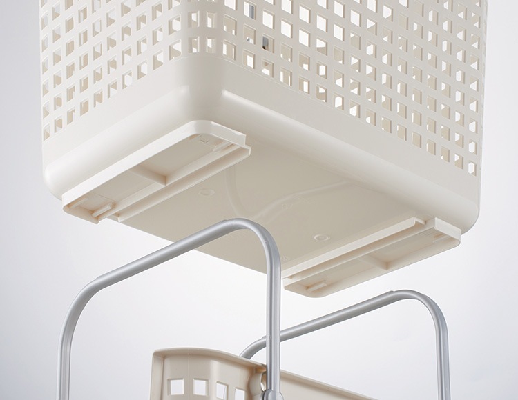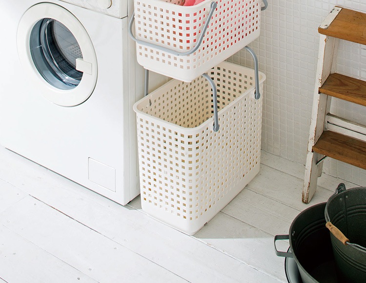 バスケットを積み重ねる事で簡易ランドリーワゴンとして使える。