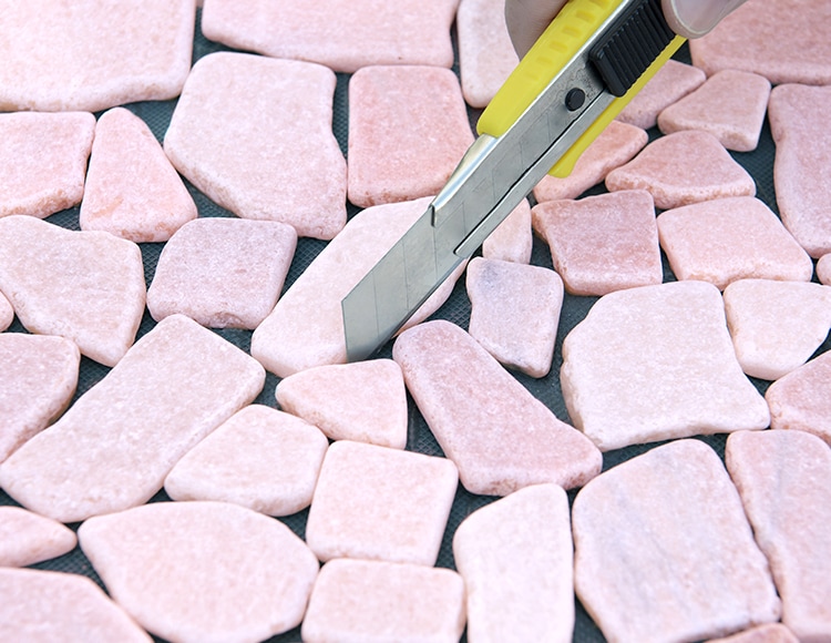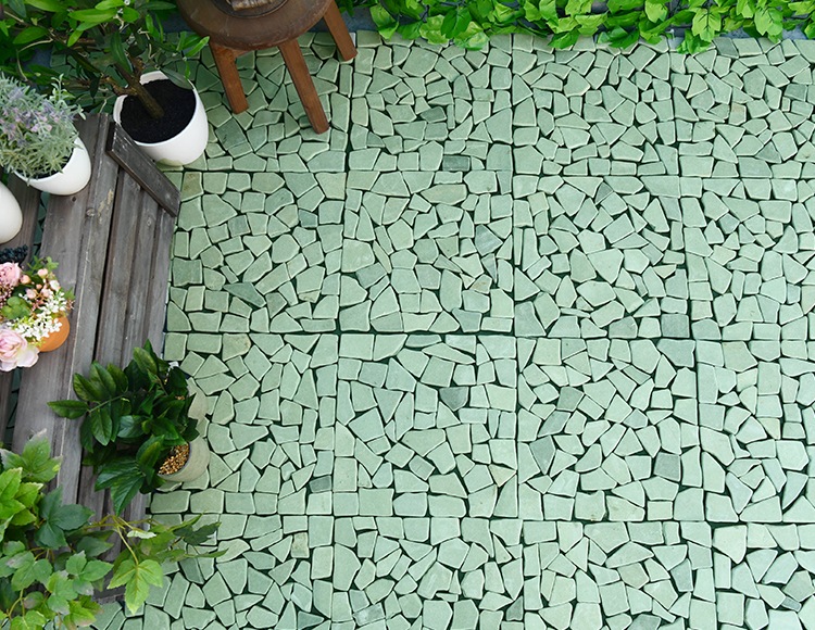 石の間をカッターで切って、お好みのサイズに調整することができるので、配置したいスペースにぴったりと敷き詰められます。