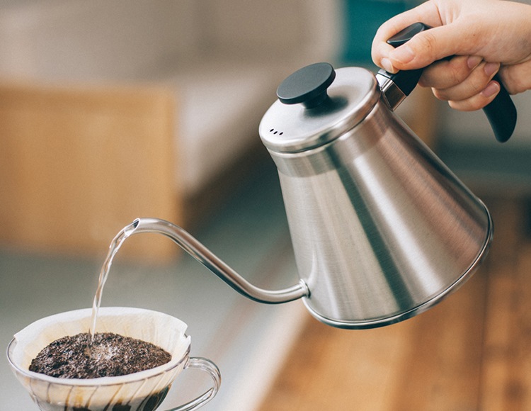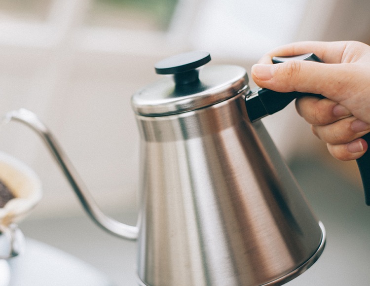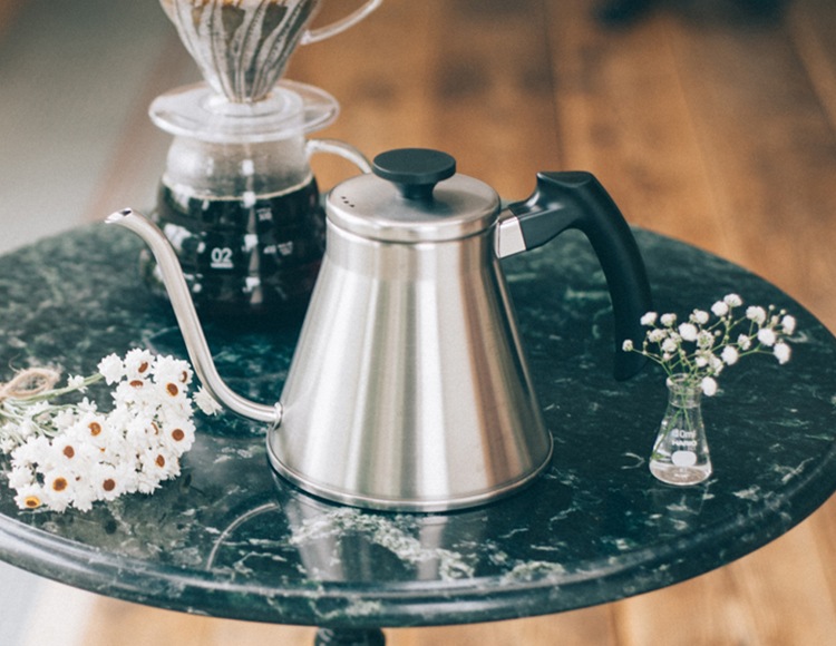 注ぎ口の細いドリップケトルはお湯の量やスピードがコントロールしやすく、おいしいコーヒーを淹れるのに役立ちます。