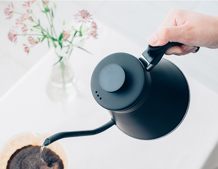注ぎ口の細いドリップケトルはお湯の量やスピードがコントロールしやすく、おいしいコーヒーを淹れるのに役立ちます。