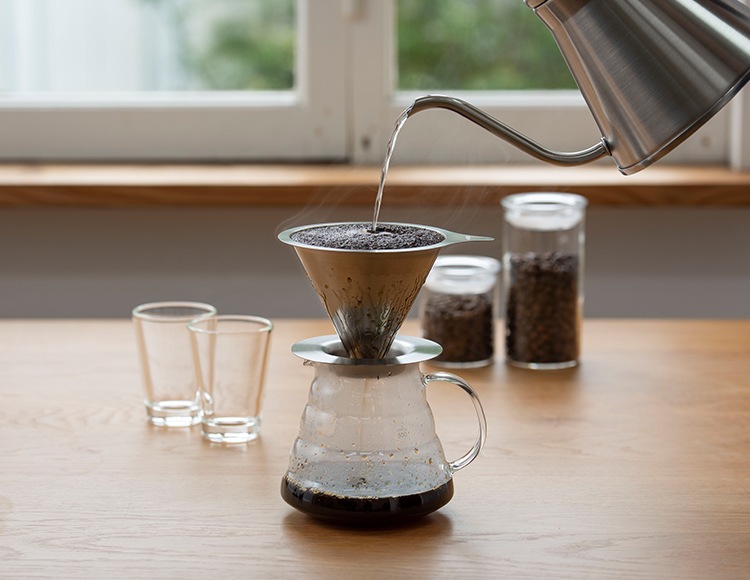 オールステンレス製ダブルメッシュフィルターのドリッパー。