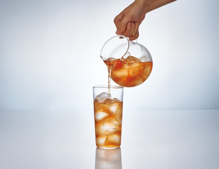 アイスティー用のピッチャーは、注ぎ口の両脇に高さをもたせ、注いだ時に氷が落ちにくい形状となっています。