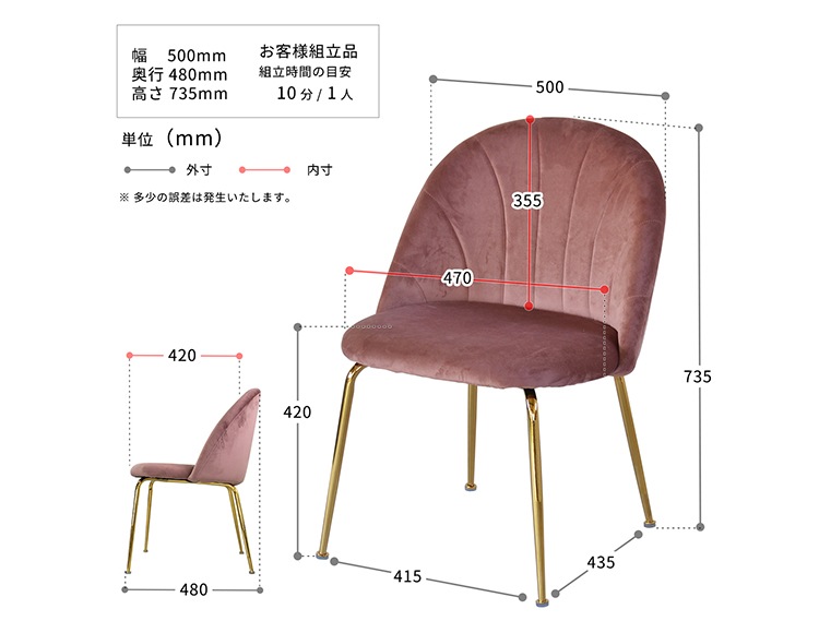 | サイズ(約) | 幅500×奥行480×高さ735mm(脚の高さ420mm) |