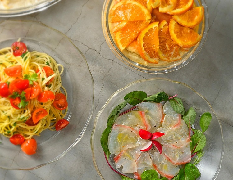 クリア な質感でサラダなどにもピッタリなガラス皿です。