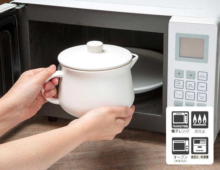 | 熱源対応 | 電子レンジ対応(700W以下) ガス火使用可(弱火-中火) オーブン対応(本体のみ) |
