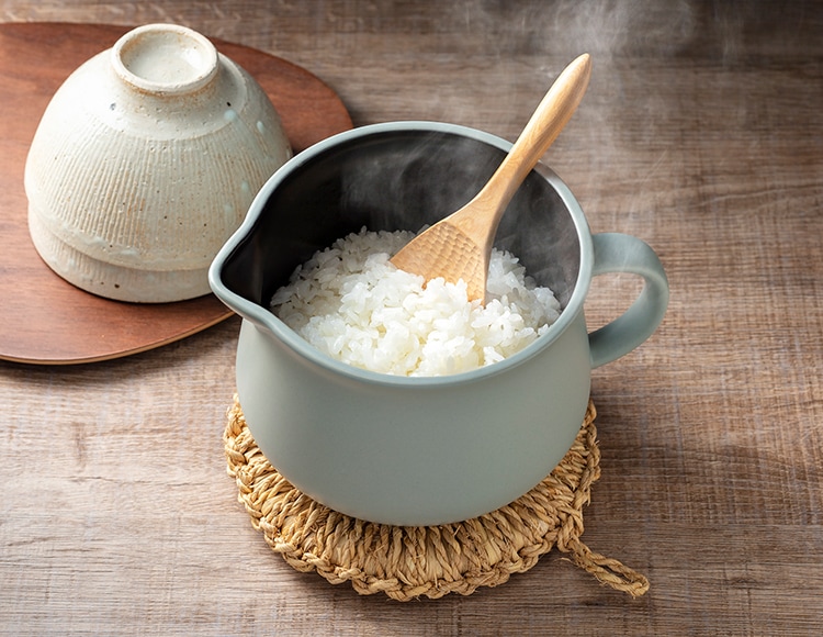 電子レンジ対応(700W以下)。レンジ加熱約8分で美味しいごはんが炊けます(1合)。