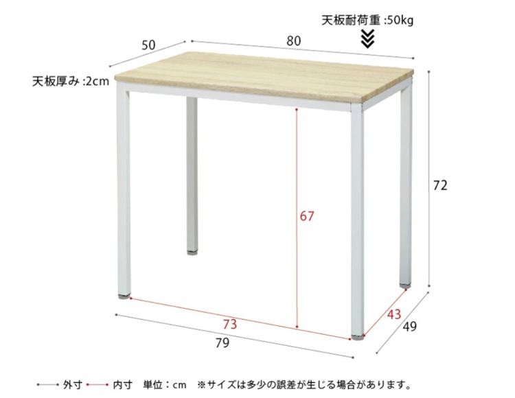 | 耐荷重(約) | 天板50kg |