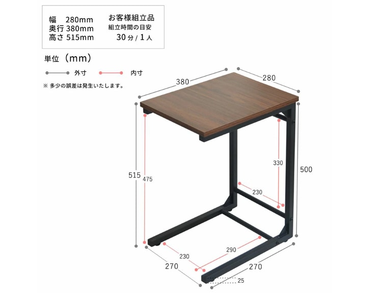 シンプルなコの字のデザインに、実用性と耐久性を持ち合わせたサイドテーブルです。