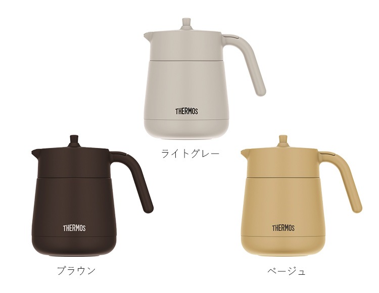 | 材質 | 内びん:ステンレス鋼 胴部:ステンレス鋼(アクリル樹脂塗装) 注ぎ口・ハンドル・フタ・ストレーナー:ポリプロピレン |