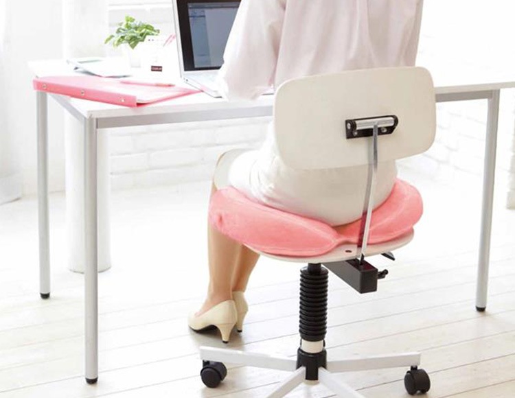 クッションを広げて座ると、お尻が左右の傾斜で内側にキープされます。