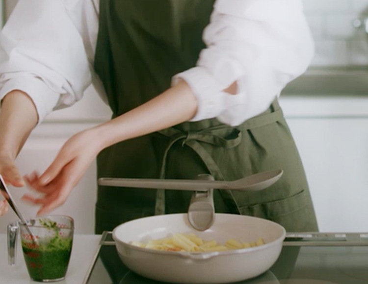 同シリーズのハンドルを使えばマグネットでくっつくため、調理中に一時置きも可能です。