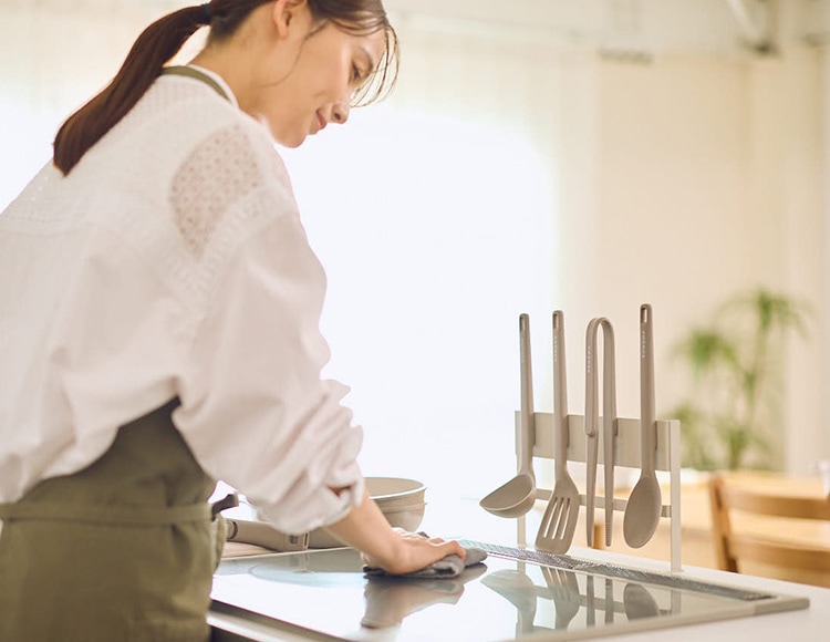 | サイズ(約) | レードル:26.6×8.1×7.5cm ターナー:31×7.1×3.6cm 調理スプーン:29×6×3.5cm 菜箸トング:27.9×6.7×1.7cm ツールスタンド:30×6×18.1cm |
