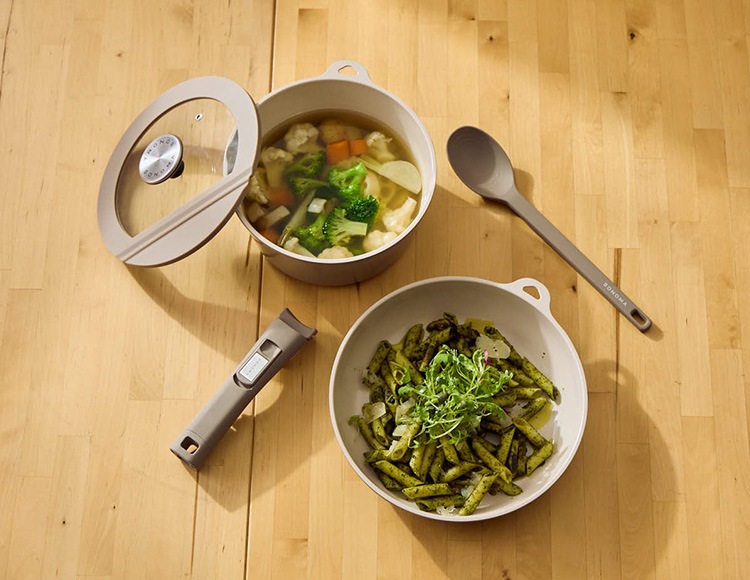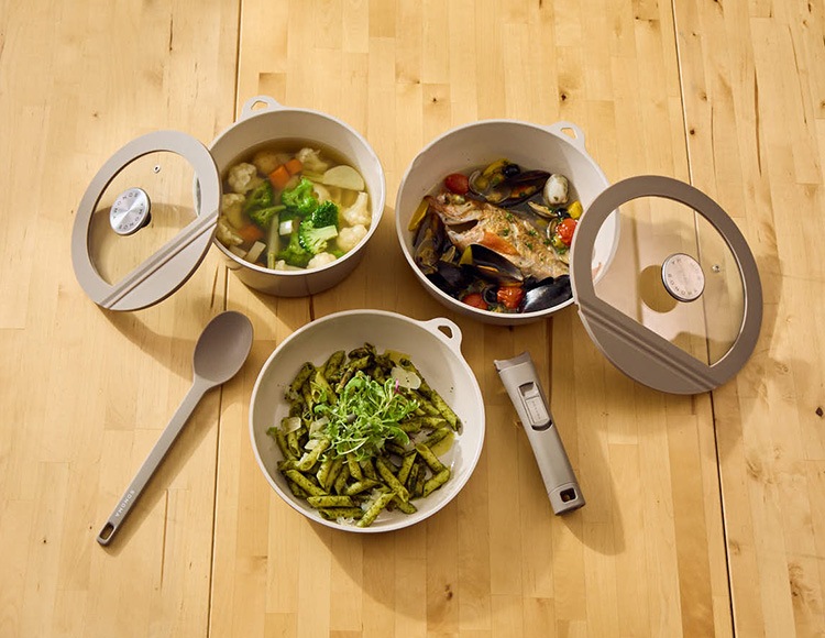 フライパンもディープパンもポットもハンドルを取り外して、お皿代わりとしてお使いいただけます。