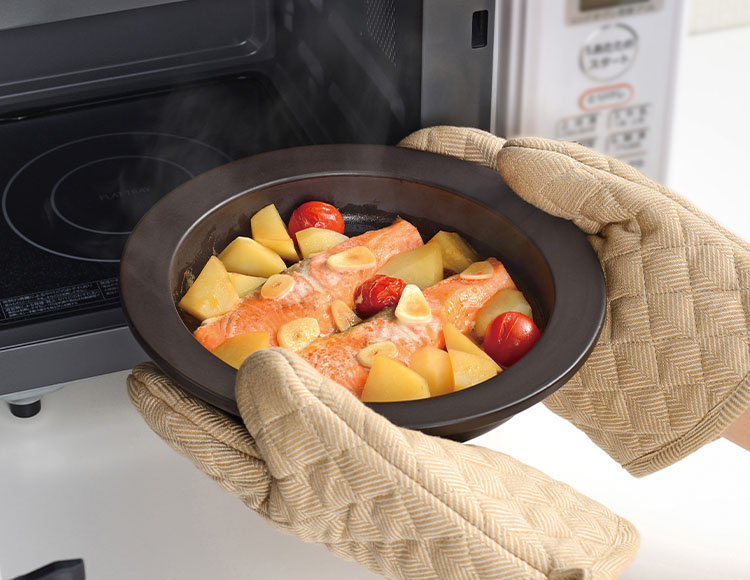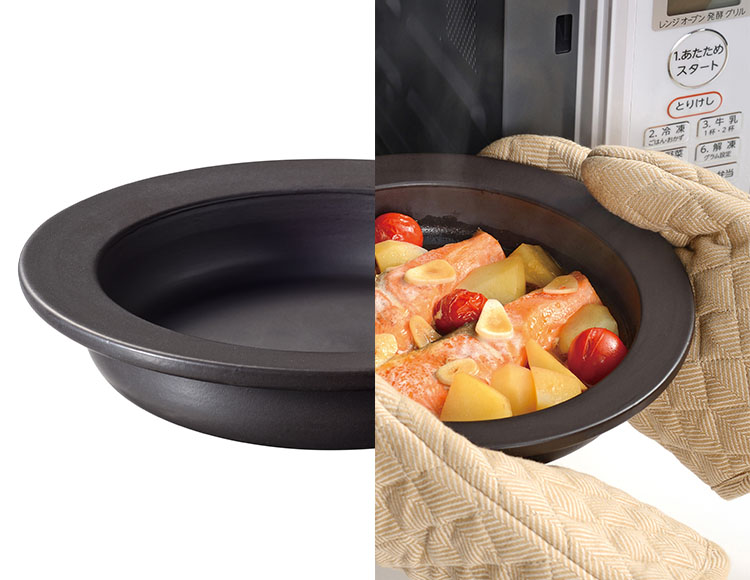 電子レンジのマイクロ波と陶器の発熱効果で早く焼き上がり、