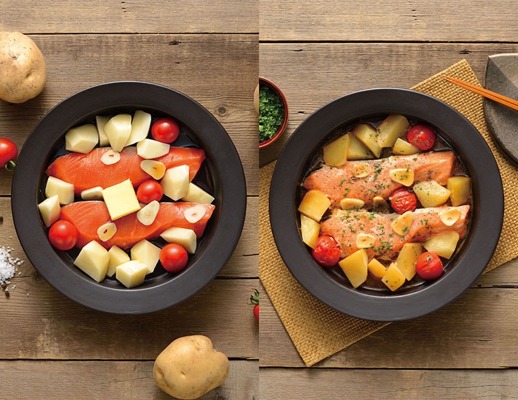 鮭とじゃがいものバターしょうゆ焼きやお好み焼きなどがカンタンに調理できます。