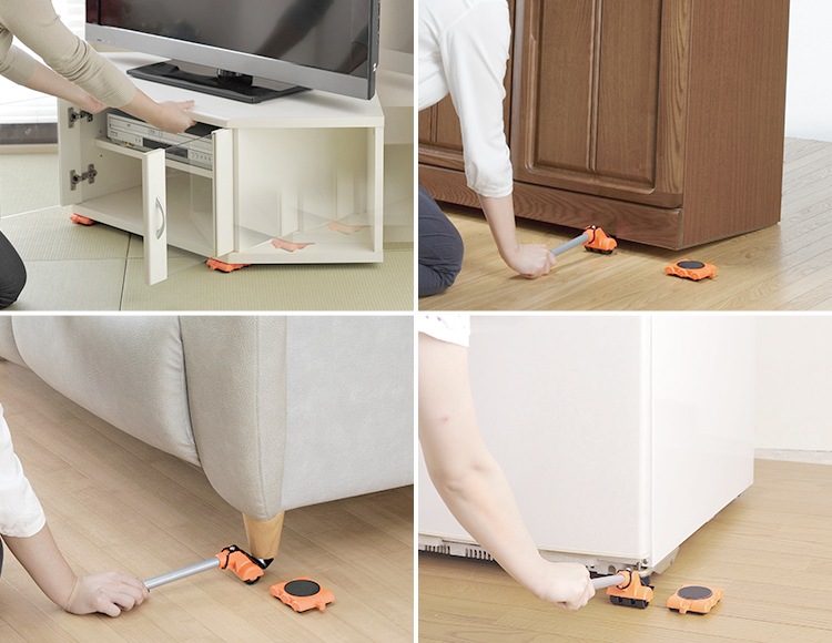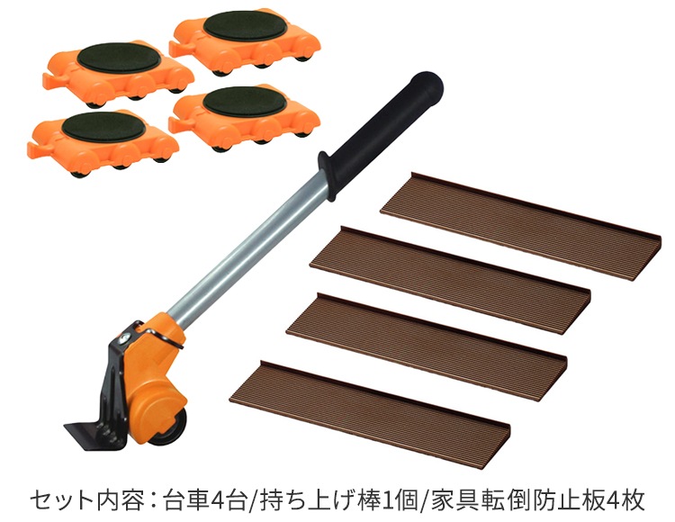 台車4台 & 家具転倒防止板4枚 & 持ち上げ棒 セット