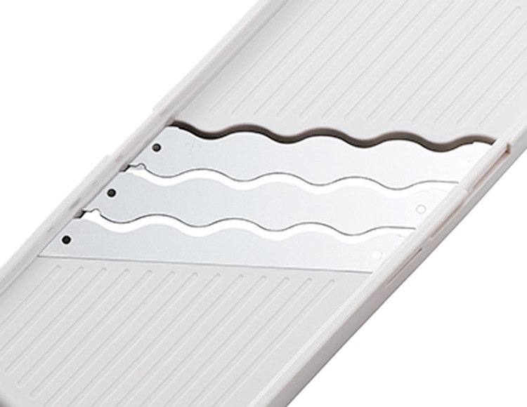 3枚の波刃で素早くどっさり。一回のスライスで3倍切れるスライサーです。
