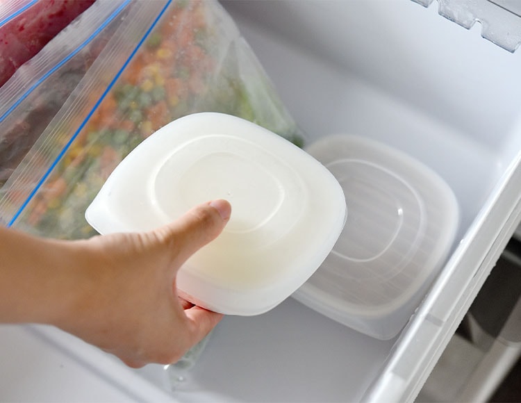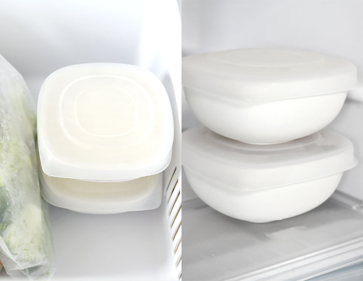2.スノコとフタをして、あら熱が取れたら冷蔵または冷凍する。